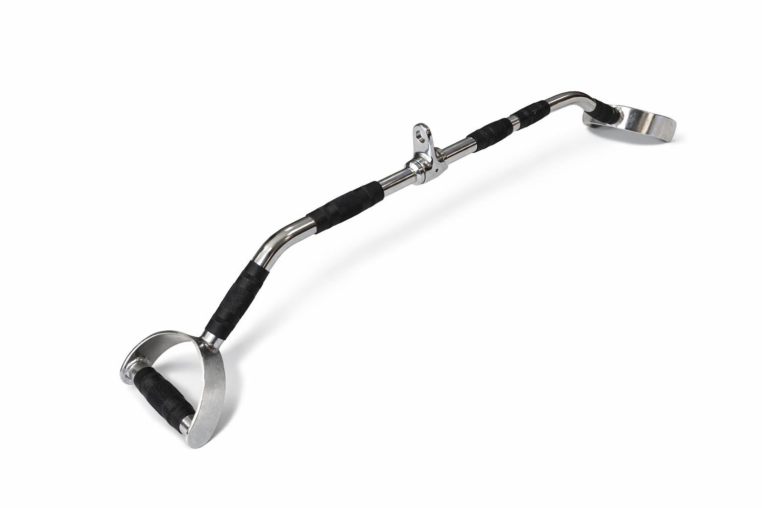 Its angled ends and extended 34-inch length allow for a deeper stretch and greater muscle activation than standard lat bars. A free-moving center swivel promotes natural movement throughout each rep, reducing strain on the wrists and elbows. Multiple ergonomic grip positions make this bar ideal for lat pulldowns, rows, triceps press-downs, and biceps curls.