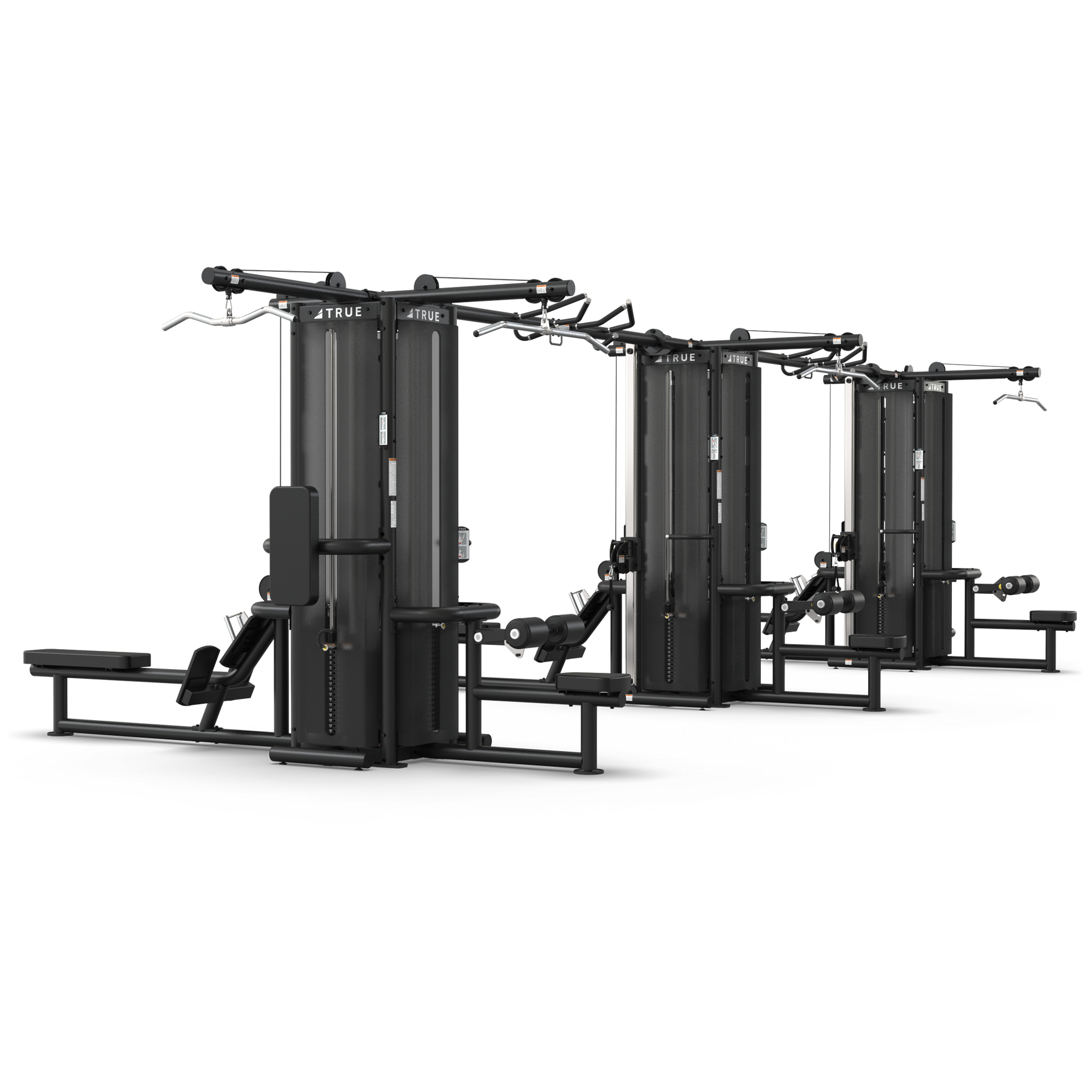 With three TRUE TMS4000 four-sided pods connected by two full Adjustable Cable Crossovers, the TMS12000 creates a 14-user training hub with limitless configuration options. Facilities can customize the system with multiple upper-body, lower-body, and functional stations to build a fully integrated strength-training ecosystem.