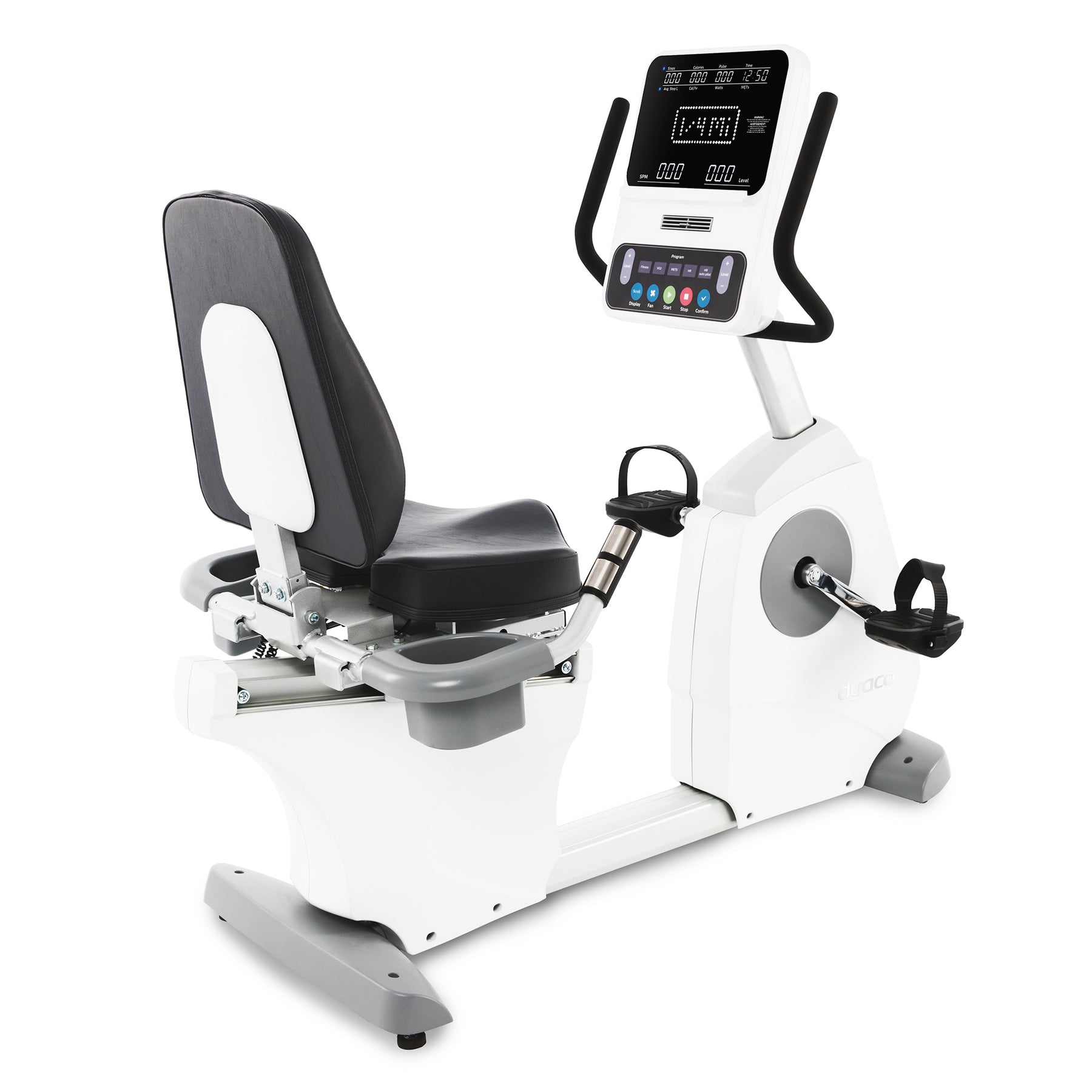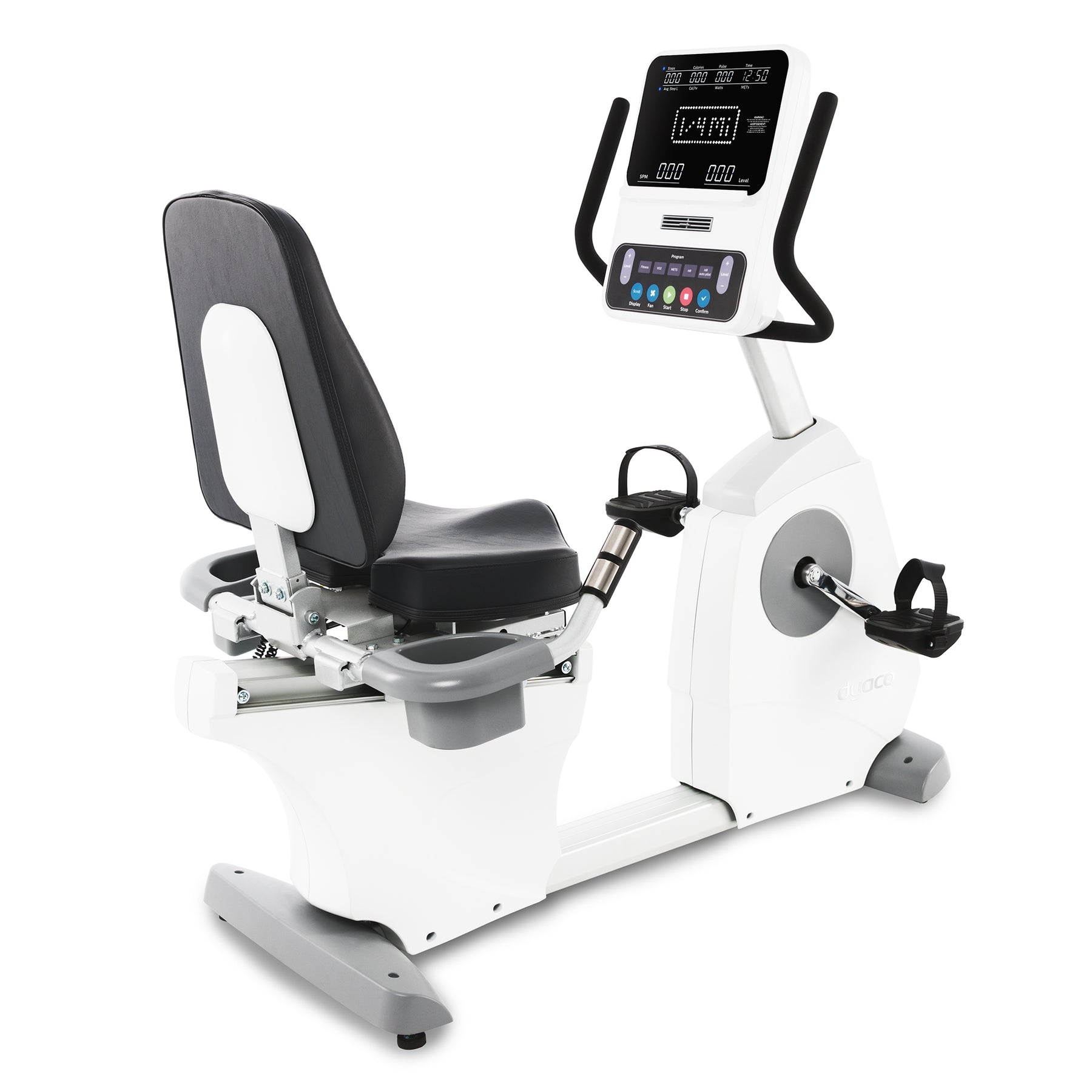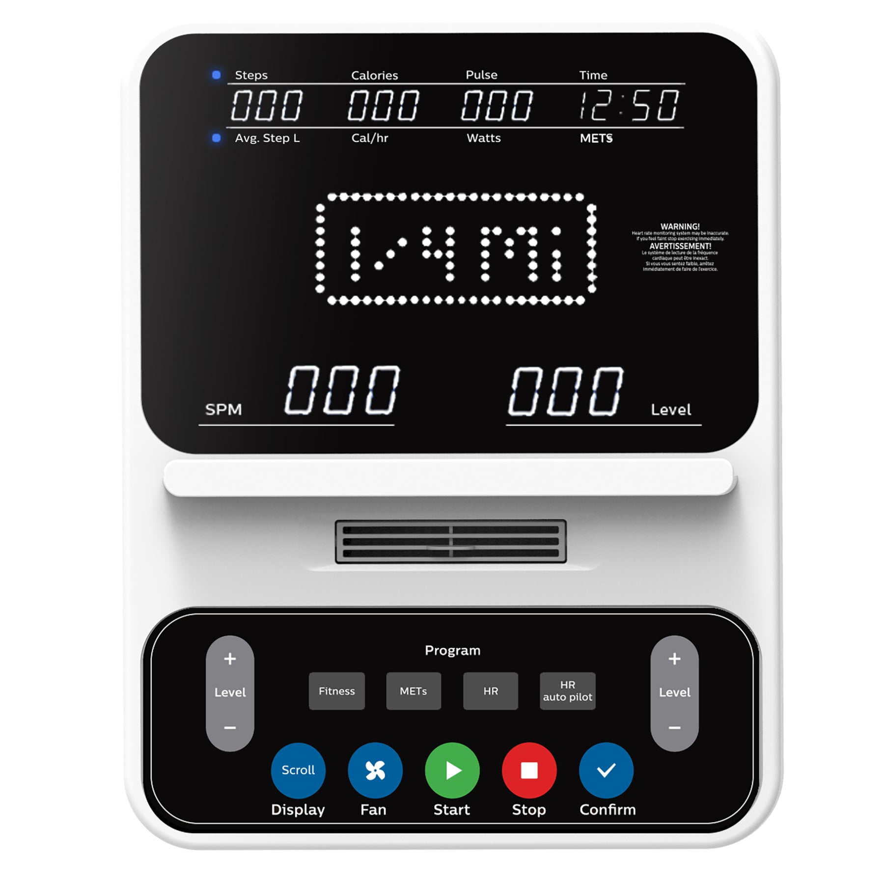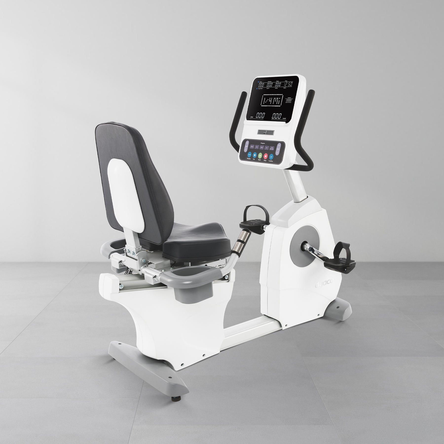 A clear, easy-to-read LED display with essential metrics and intuitive controls — ideal for physical therapy, progressive rehab, or everyday cardio sessions.