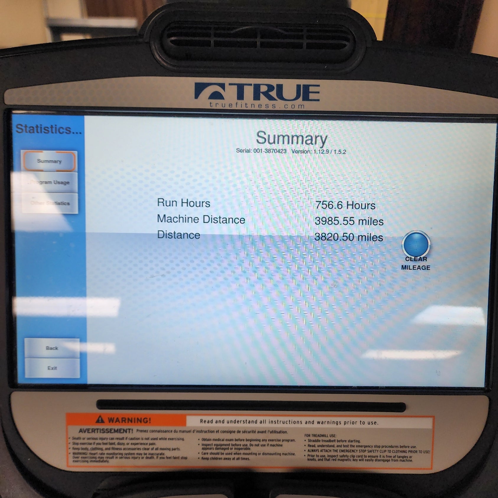 This unit is pre-owned and in excellent condition. Each treadmill is fully inspected and tested by our team to ensure it is in proper working order. 3,985 miles