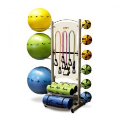 This set is comprised of the Deluxe Storage Tower, as well as a variety of equipment that perfectly fits on this storage tower, including exercise mats, foam rollers, medicine balls, stability balls, resistance cables, and quick flip handles.