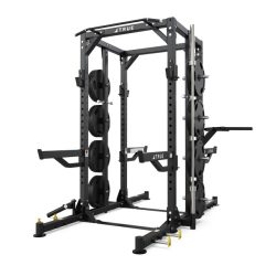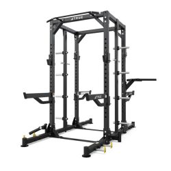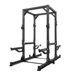 - Optional chin bar, band pegs, core trainer, dip station, and center rack catch rails