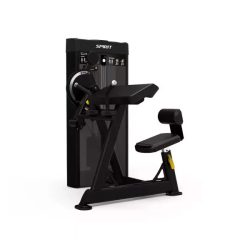 The Spirit Biceps / Triceps Machine features an angled arm pad designed to minimize shoulder movement, allowing for targeted emphasis on either the biceps or triceps. The curling/extension bar is adaptable, pivoting to accommodate different forearm lengths and axis of rotation alignment.