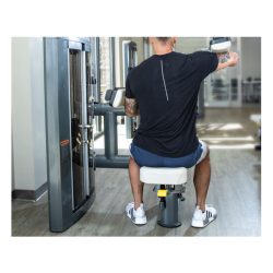 The TRUE SPL-0800 Deltoid Raise features modern styling, precision biomechanics and a comfortable easy entry and exit design. 8 position seat adjustable while seated or standing uses premium grade linear bearings and gas cylinder assist for stable, low friction adjustments.  Counterbalanced press arms provide user-friendly low starting resistance, ergonomically designed handles positioned to encourage proper user support and alignment during exercise, and independent arm movement allows for unilateral and bilateral training.